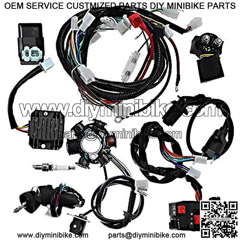 Package includes: 1x GY6 125cc 150cc Wiring harness, 1x CDI, 1x Spark Plug, 1x Ignition Coil With Lead, 1x Solenoid Relay, 1x Rectifier (Voltage Regulator), 1x Ignition Switch (2 keys, waterproof), 1x Upgraded Multi-functional ATV Switch, 1x MAGNETO Stator (6 Pole 5 Wire, 2 fixing holes) COMPLETE ELECTRICS GY6 125CC 150CC WIRE LOOM MAGNETO STATOR ATV QUAD WIRING HARNESS