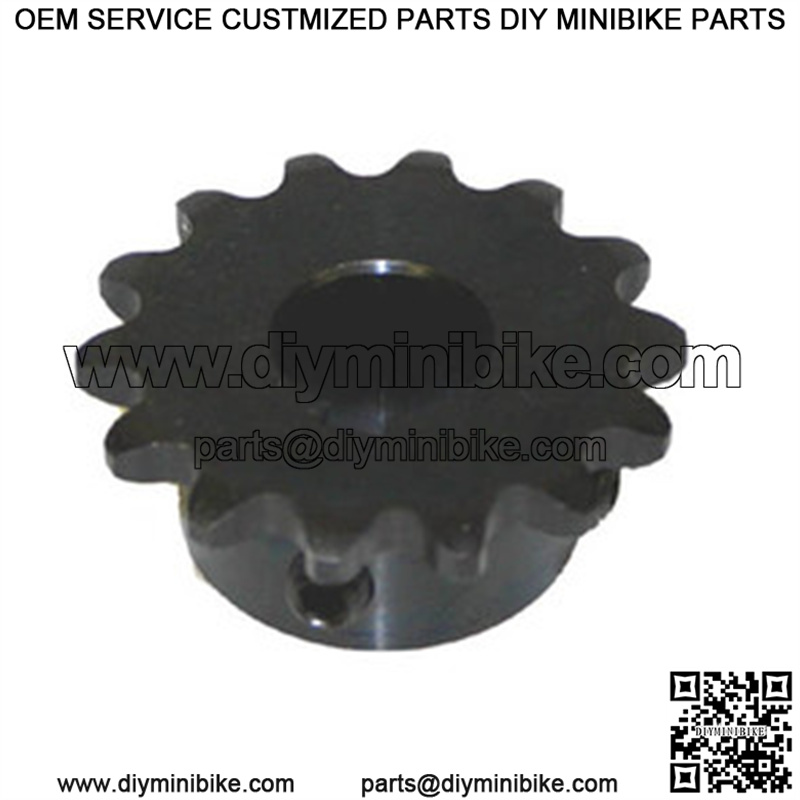 14 tooth for 35 chain. 5/8″ bore, complete with set screw. 3/16″ keyway.