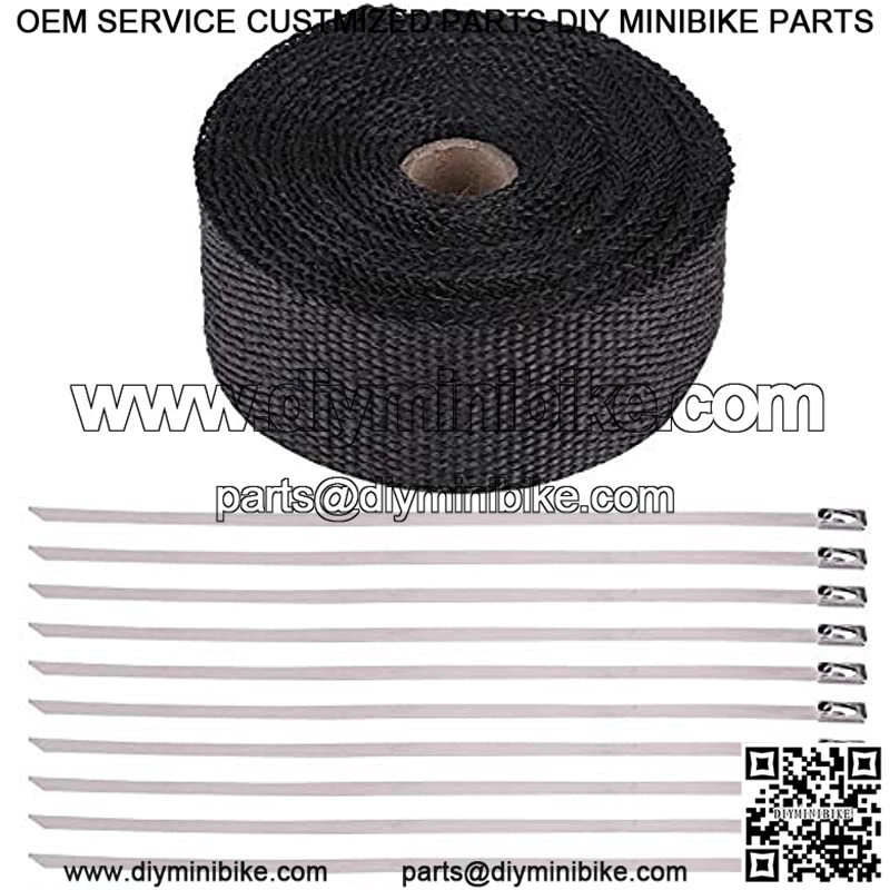 Comes with 10 Metal Ties: The size of this Exhaust Pipe Wrap is 5m x 5cm x 1.5mm / 16ft x 2inch x 0.06inch, it comes with 10 metal ties, and its length is 20 cm / 7.8 inches
