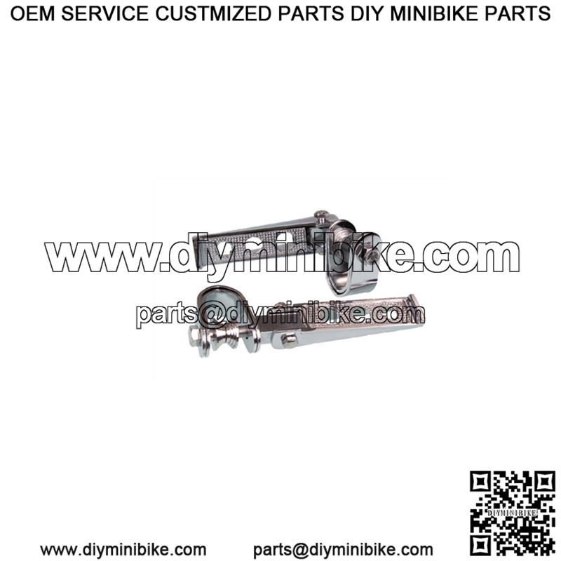 Universal Holey Footpeg set in chrome. Heavy duty, with 1″ and 1-1/4″clamps