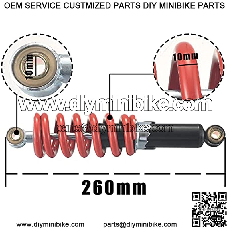 Impact grade 400lb, 260mm or 10.2 “eye to eye, inner diameter 10mm, suitable for 50cc-150cc off-road vehicle, pit car, ATV, go kart and motorcycle.