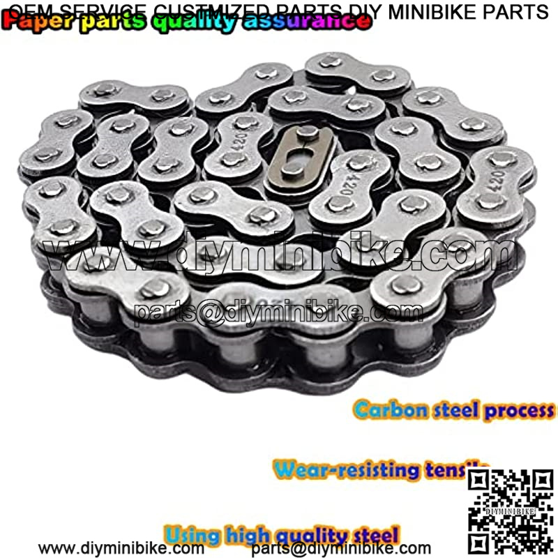 #420 Chain 42 Link with Master Link Uses A Special steel alloy designed to protect against ??heat cracking?? in cold weather due to Severe Heating And Cooling During Competition.