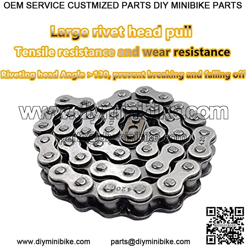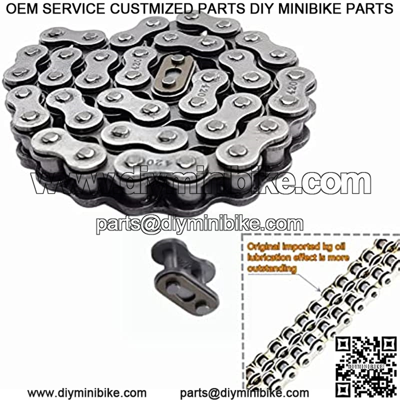 The 420 chain 42 Link for the mini bikes is the shorter of these bikes’ two chains