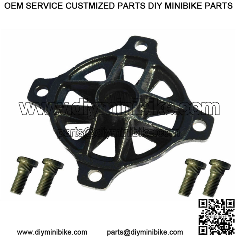 This rear hub fits nearly all 150cc Hammerhead karts except the Hammerhead Junior (UM125IIR) and Hammerhead GL150. The bolt pattern is 4 x 137mm. The hub measures approximately 5 2/5″ inches center to center (across).- Stud spacing measuring diagonally 136mm or 5.36″- Center splines are 25mm