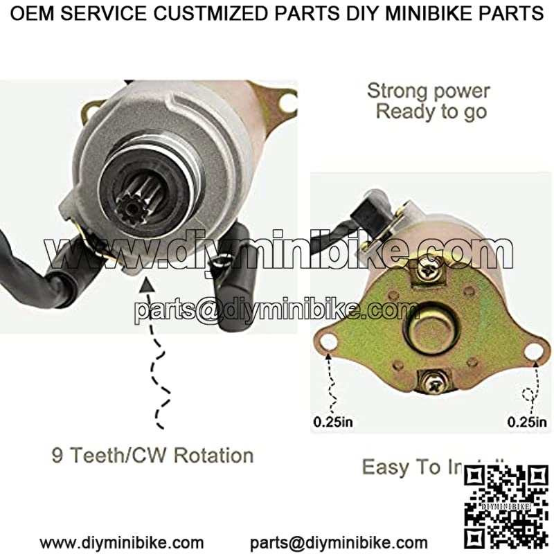 [Specification] Unit Type: Gy6 Starter; Voltage: 12V; Rotation: CW; Teeth: 9; Starter Type: PMDD. Replaces oem part number: 35850-286-007,35850-286-027,35850-286-017,35850-375-000