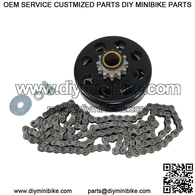 Get your go kart or mini bike up and running with this upgraded clutch and chain set! (1) 3/4″ Bore #35 Chain 12 Tooth Clutch (1) 4′ length of #35 chain *Includes required crankshaft bolt for most motors.* Packaging removed for shipping. Rated up to 13HP (4 stroke) 2300 RPM Engagement Replaceable Sprocket Hilliard’s new patent pending Extreme Duty centrifugal clutch can handle higher temperatures to offer longer clutch life. * Bi-Directional, can run clockwise & counter clockwise. * Dissipates heat better, extending clutch life. * Clutch is easily tuned for your specific need. * Quick change spring and sprocket design. * No special tools needed. * Built-in internal keyway. Hilliard’s Extreme Duty – 3/4″ 12 Tooth #35