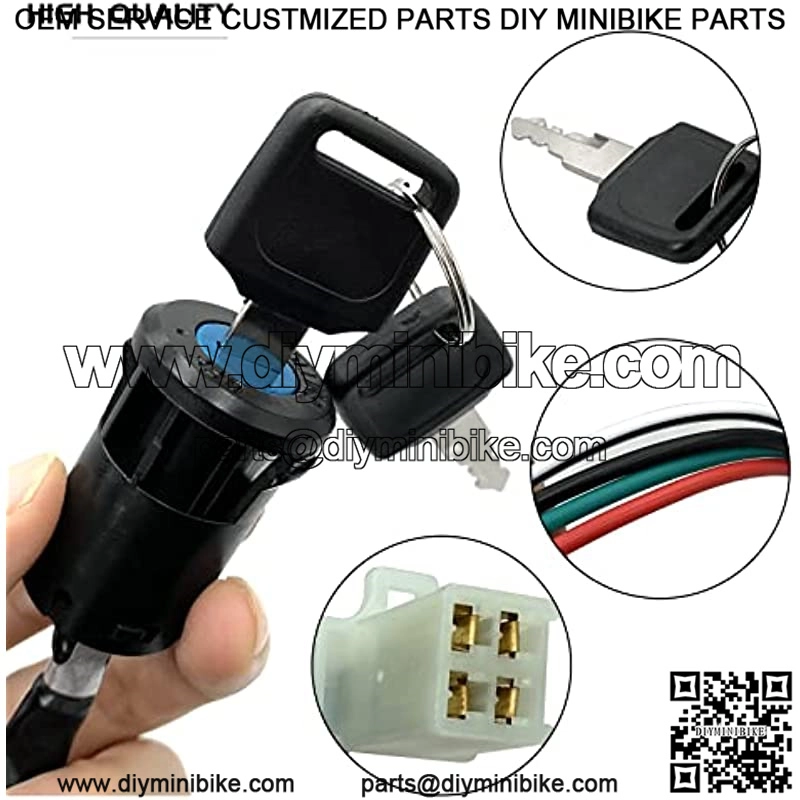 REPLACEMENT IGNITION STARTER SWITCHES – An ignition switch, starter switch or start switch is a switch in the control system of a motor vehicle that activates the main electrical systems for the vehicle. If you have to wiggle the key hard or the Quad, Super Bike, Pocket Bike, Dirt Bike, ATV & Scooters won’t start when the key is turned, it means you need to replace a new engine starter ignition key switch for your motor.PROFESSIONAL DESIGN – 4 Pin Ignition Switch Key Set. This Engine Ignition Switch made of high performance ABS and high quality brass, which provides safety, durability and excellent electrical conductivity. You can buy this 4 wire ignition key switch with great confidence.COMPATIBILITY – This Ignition Key Switch replacement for 50cc, 70cc, 90cc, 110cc, 125cc 150cc 200cc 250cc motorcycle, atv, quad, scooter, go kart, moped, buggy, pocket bikes, pit bike, dirt bike, mini bikes or super bike. Compatible with almost all the name brand from China such as TaoTao, Buyang, Cool