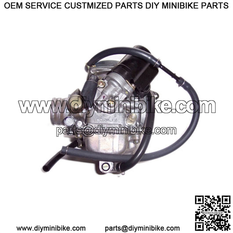 This carburetor with electric choke is compatible with the Spiderbox GY6 150cc engine. May also work with other go karts, scooters, & ATVs.