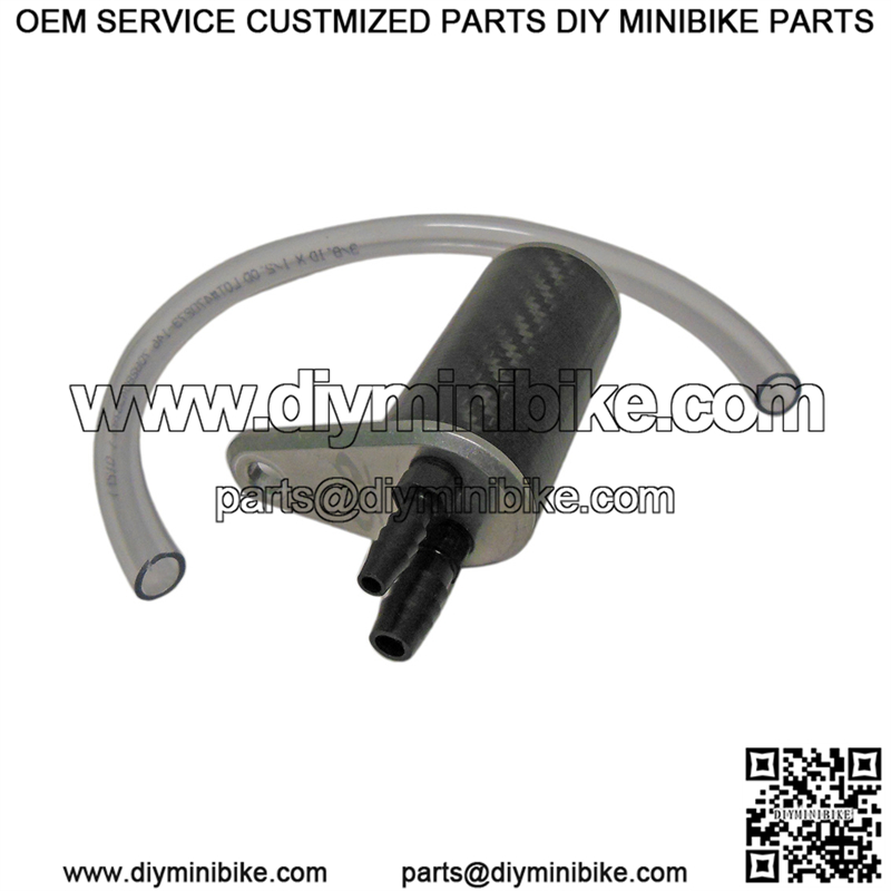 Weighing in at only 2.7 oz. fully assembled, this catch can weighs 1/4 the amount of our larger, fully aluminum catch cans.