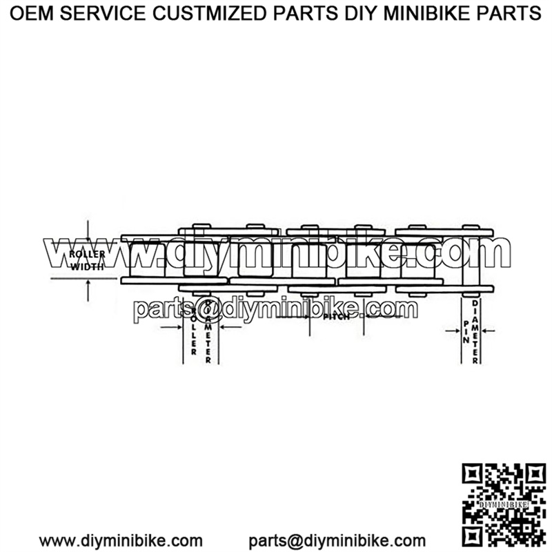Choice of #35, #415, #40, #41, #420, #520, #530 Pitch Chain