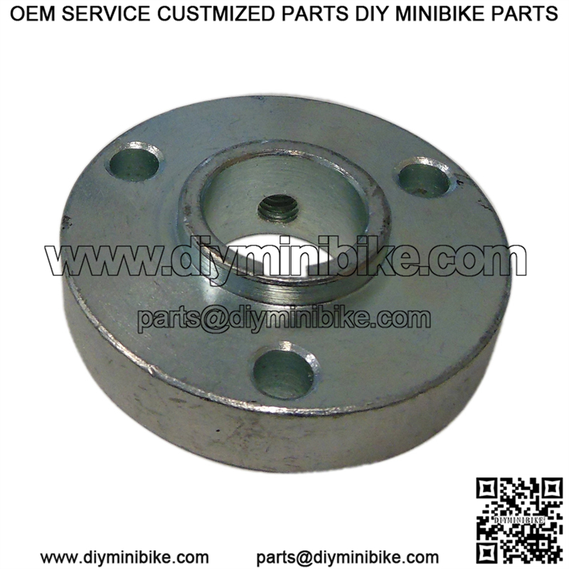 This is a plated steel hub with 1″ OD shoulder and 3/4″ bore.