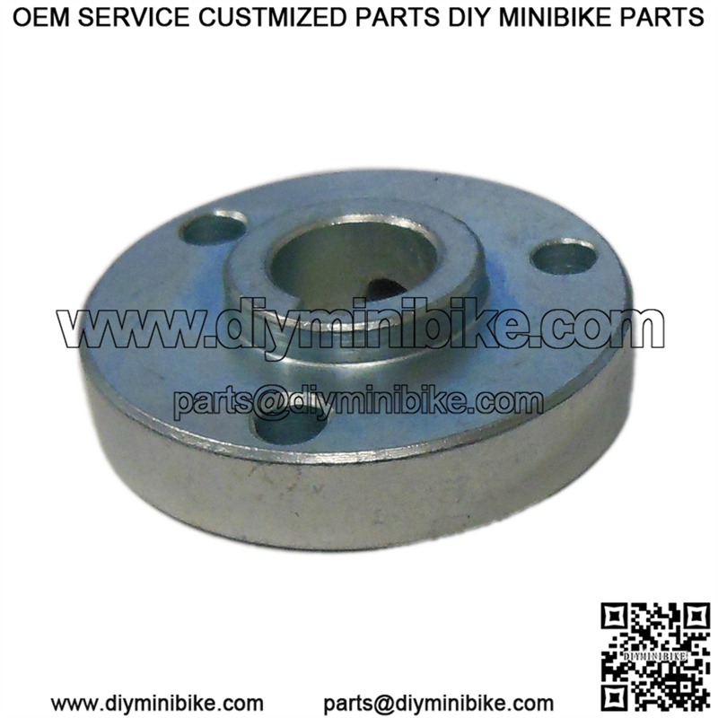 This is a plated steel hub with 1″ OD shoulder and set screw hole instead of keyway.