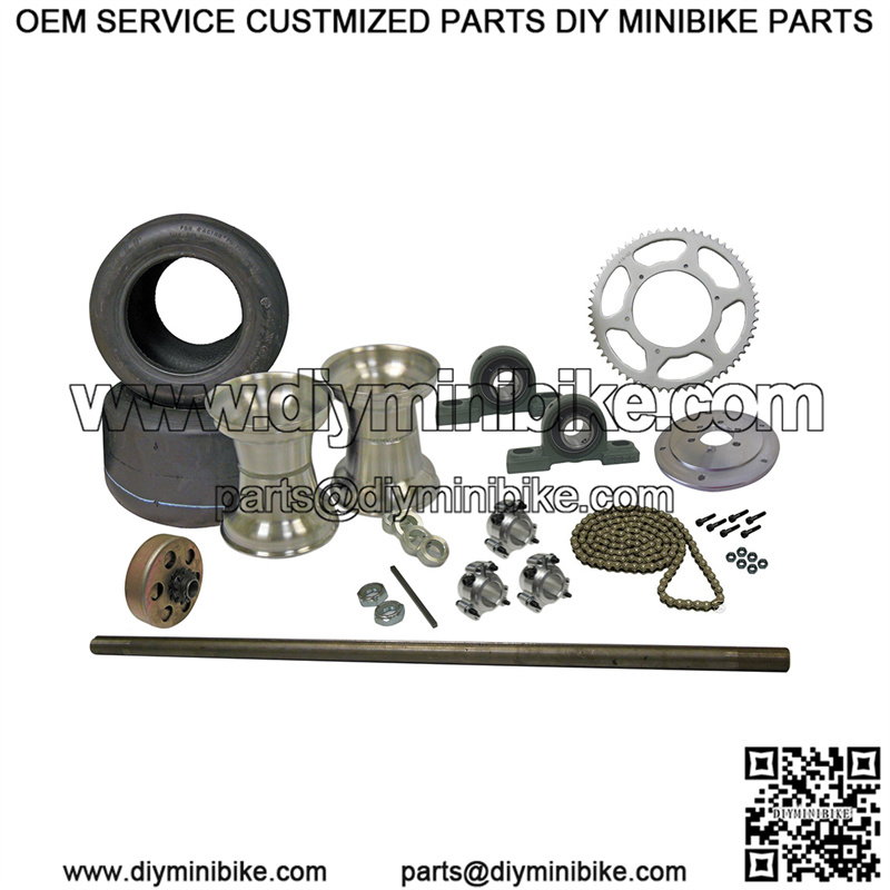Complete Drift Trike Axle Kit with Tires, Rims, Pillow Block Bearings.