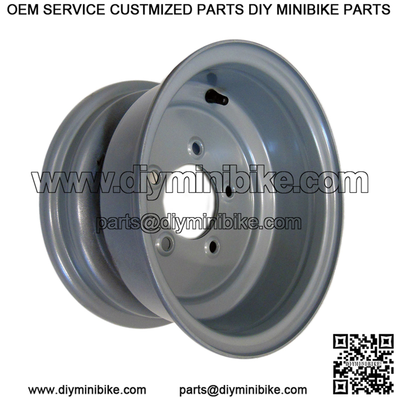 This 10″ x 6″ steel trailer wheel has a 5 on 4-1/2 bolt pattern, a 3.140″ pilot diameter, and a solid-center design.