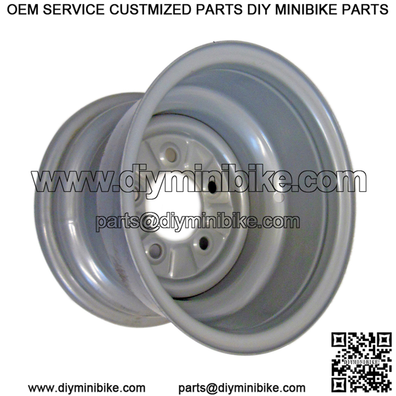 This 10″ x 7″ steel trailer wheel has a 5 on 4-1/2 bolt pattern, a 3.140″ pilot diameter, and a solid-center design.