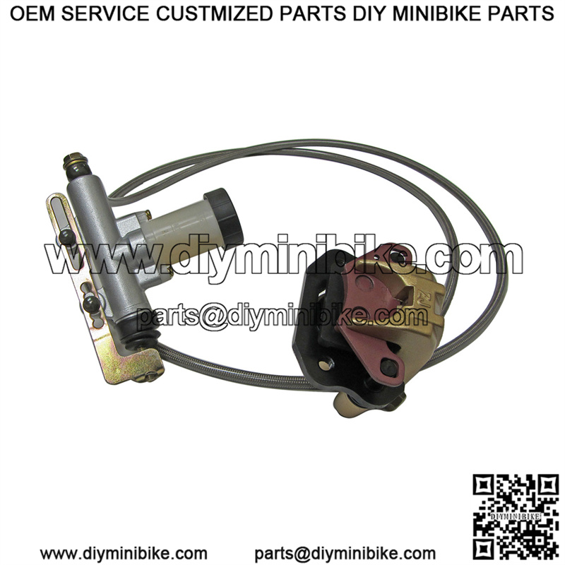 This hydraulic brake caliper set up used on many Hammerhead, Twister, and Trailmaster mid sized go karts. This kit comes ready to install, pressurized with Dot3 brake fluid. No need to hassle with bleeding brakes. Save time and money with this kit!