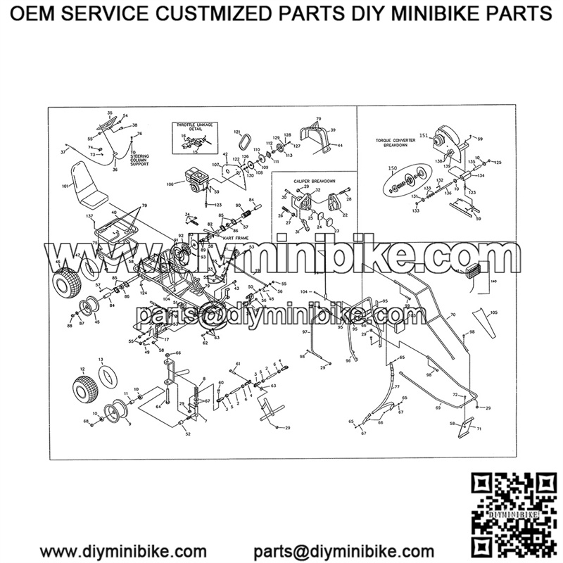 A torque converter is required on these kart because the rear tires are taller than 15″. A centrifugal clutch that uses a chain only would burn up in just a couple of hours so keep a torque converter going