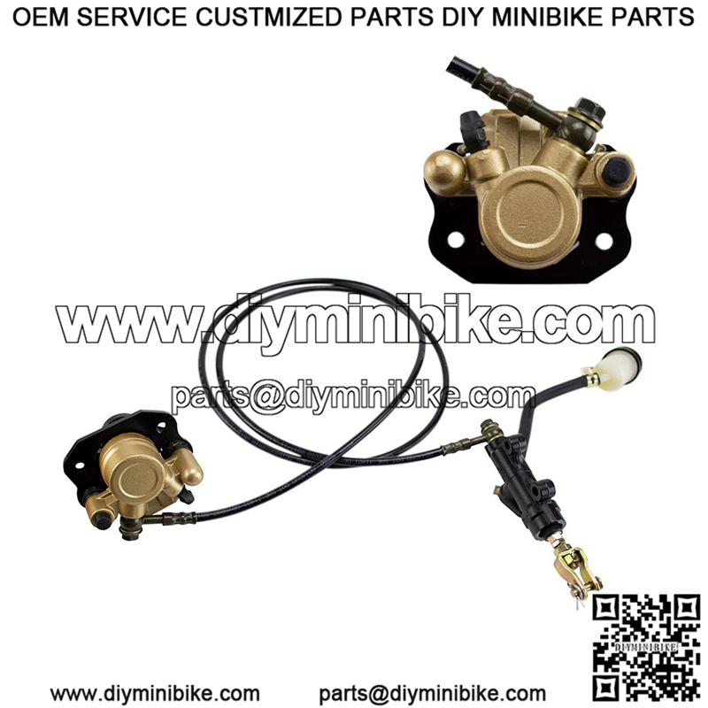 This Chinese rear brake assembly is the replacement part for the Coleman KT196 and Hisun GK200 go-karts. The assembly has the brake master cylinder, caliper, brake line hose and brake fluid reservoir.