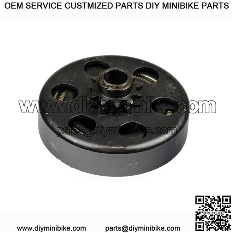 The clutch assembly for the Baja Doodle Bug (DB30) mini bike includes an 11-tooth front sprocket