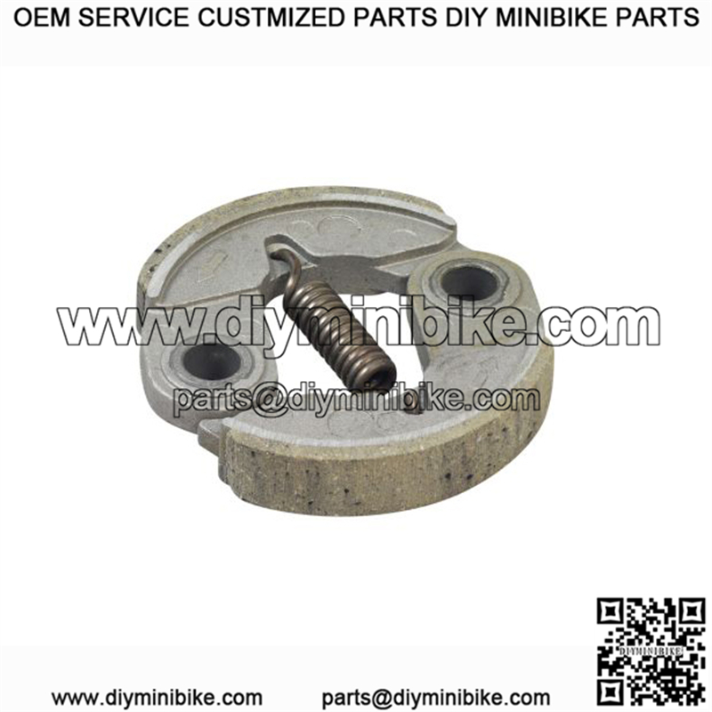 Also compatible with some pocket bike clutch pads Two shoe scooter clutch pad assembly compatible with 36cc, 43cc, 49cc, 50cc, and 52cc two-stroke gas scooter engines. Also compatible with some pocket bike clutch pads.