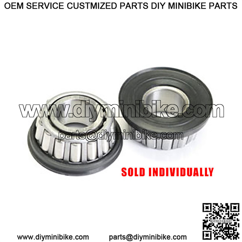 Tapered Roller Bearings, generally suited to more strenuous applications, employ a Cup (Race) pressed into the wheel, a Cone (Bearing)