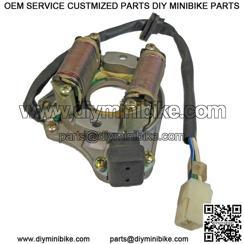 This Chinese stator magneto is the replacement part for many 4-stroke Chinese ATVs, Dirt Bikes and Go-Karts. The stator recharges the battery while the machine is in use, like an alternator in a car. This stator fits 50cc, 70cc, 90cc, 100cc, 110cc, and 125cc models.