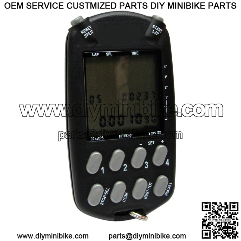 The MultiChron stopwatch is a versatile hand-held digital stopwatch that tracks up to four different racers simultaneously. Its generous memory lets you quickly see best laps and scroll through all of the laps to review the race, up to 99 laps per driver. But we didn’t stop there – you can also have up to 9 splits per competitor, per lap.