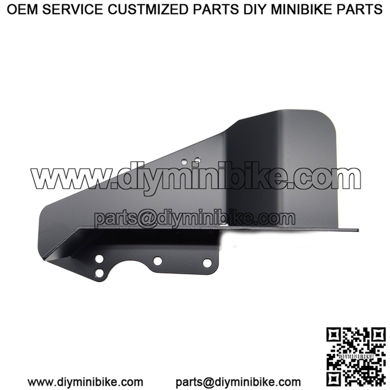 Taller guard to shield driver and jacket from tall clone pipes. Slotted mounting hole to adjust height for maximum driver comfort no matter what angle motor mount you are using. This chain guard is produced by Slack Performance Parts / PMI.