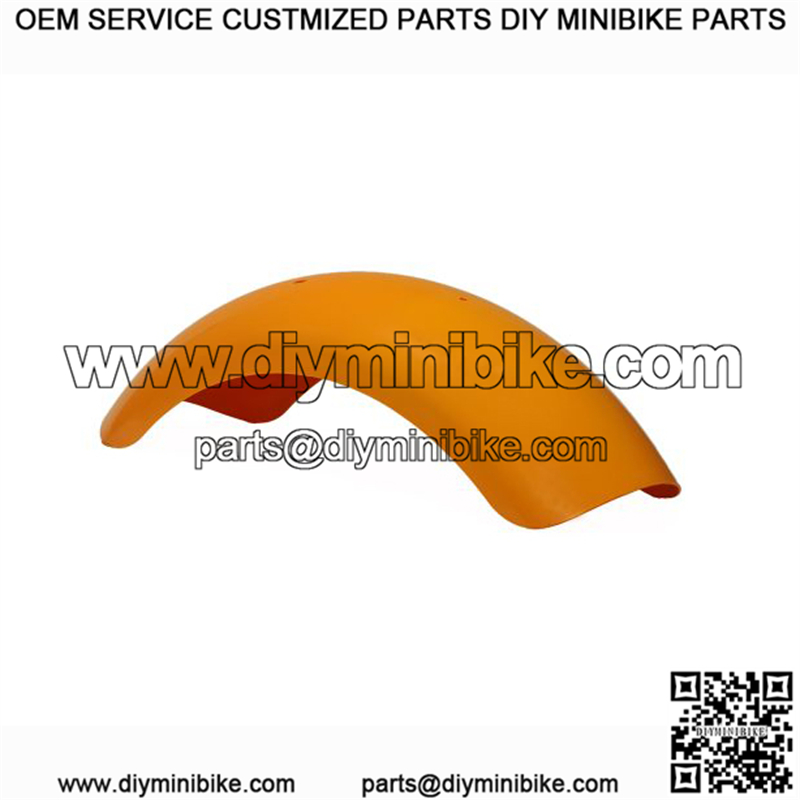 We offer this orange-yellow plastic front fender for the Baja MB165 and MB200 (Baja Heat, Mini Baja, Baja Warrior) mini bike