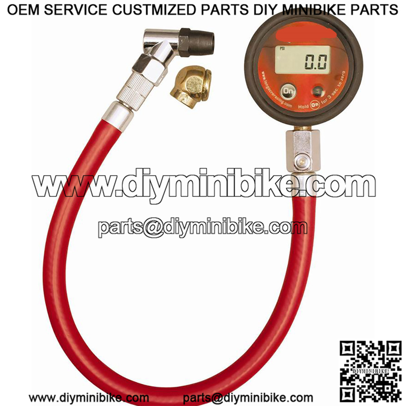 Hi-Flex 14″ hose with angle chuck – ball chuck also included with All tire gauges