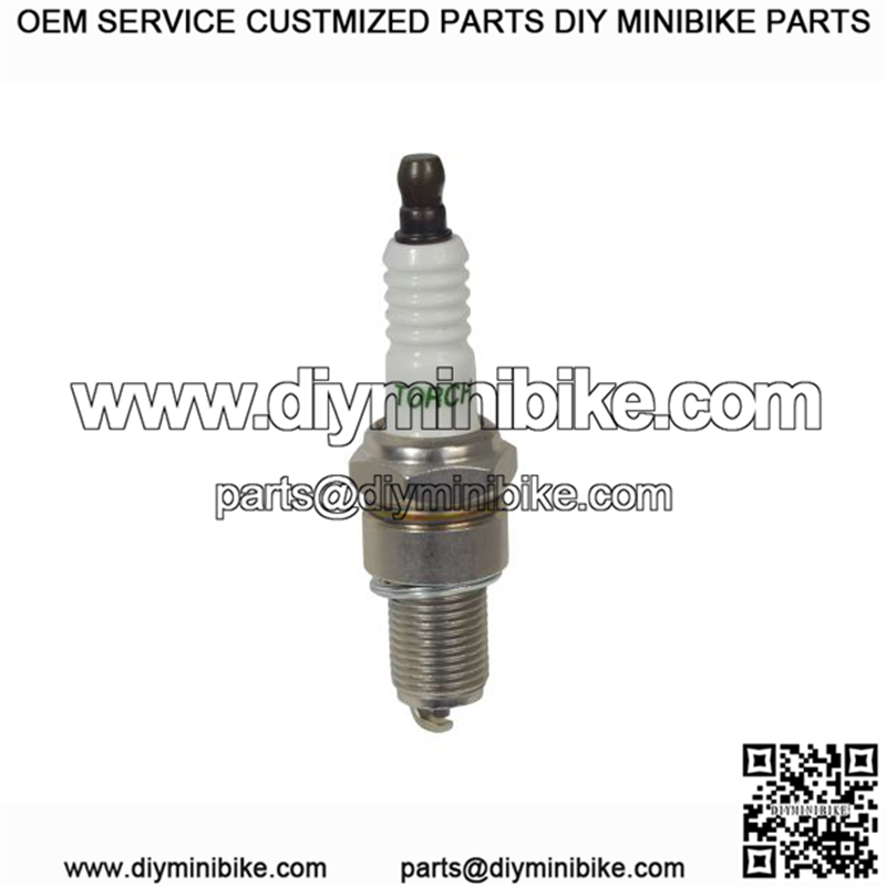 This Torch F7RTC/Champion RN9YC spark plug is found on a bewildering multiplicity of small 6.5 hp gas engines, providing the igniting spark for everything from Baja Mini Bikes to generators, log-splitters, pressure sprayers, pumps, and a myriad of other applications. If it turns gasoline into noise, chances are it uses this ubiquitous spark plug. Name: F7RTC