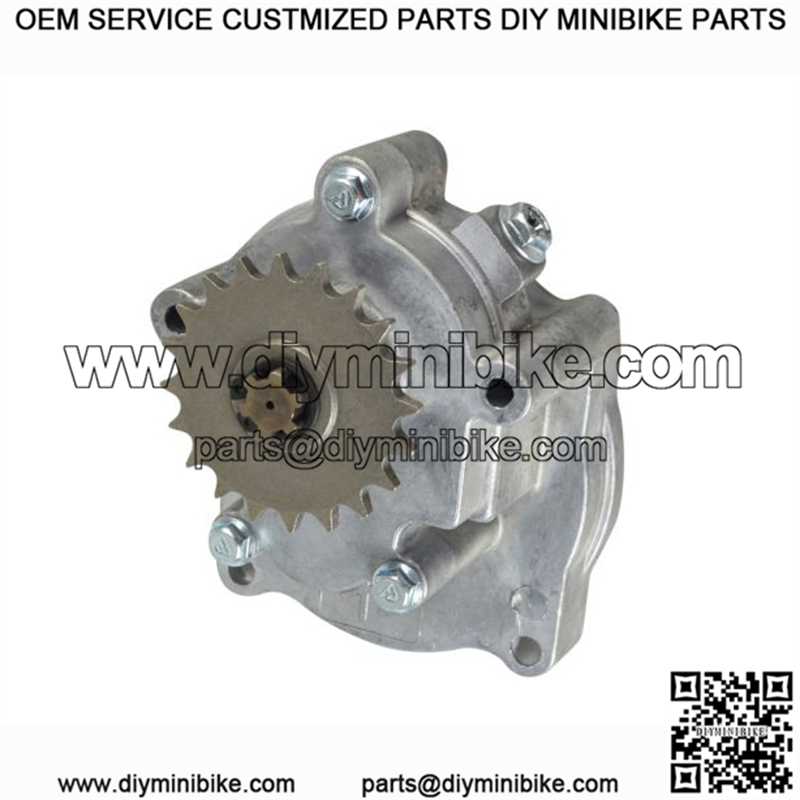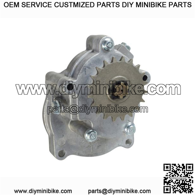 This item includes a 20-tooth sprocket for 8mm 05T chain Here is the transmission for the Motovox MVS10 stand up scooter, a very common scooter part used on many makes and models of 49cc gas powered scooters. This item includes a 20-tooth sprocket for 8mm 05T chain. If your old transmission uses a 25-tooth sprocket for a #25 chain, you can replace the sprocket with your old sprocket very easily. The gear ratio is approximately 5:1. The clutch drum turns five times in order to rotate the sprocket fully one turn.
