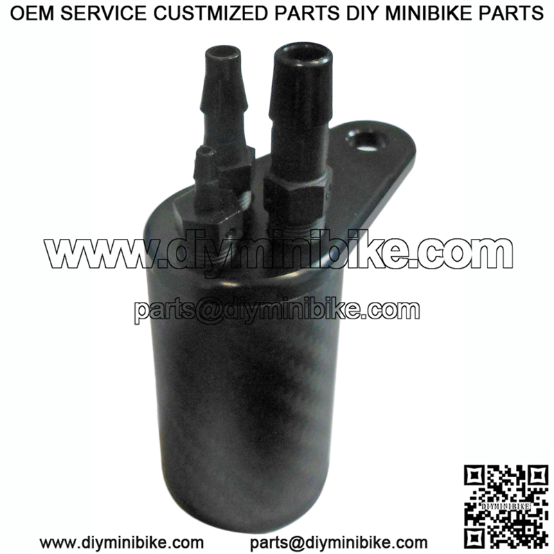 Weighing in at only 2.7 oz. fully assembled, this catch can weighs 1/4 the amount of our larger, fully aluminum catch cans.
