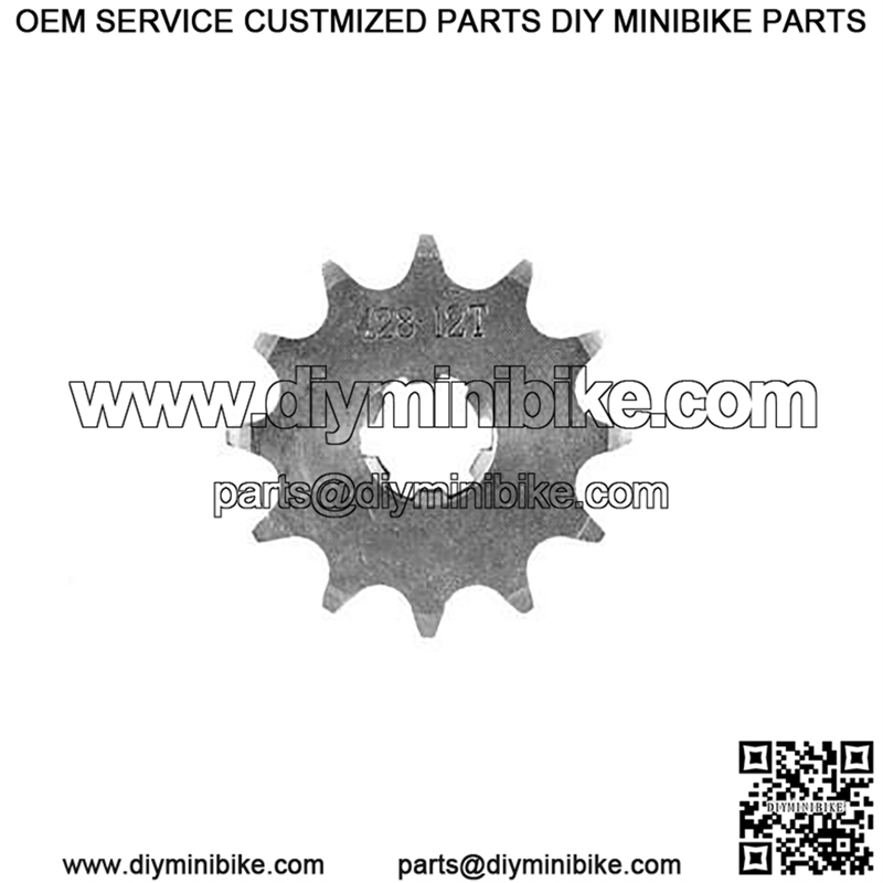 This front sprocket is used on the Chinese 50cc – 125cc engines. This sprocket has 12 teeth and is compatible with #428 chain only.