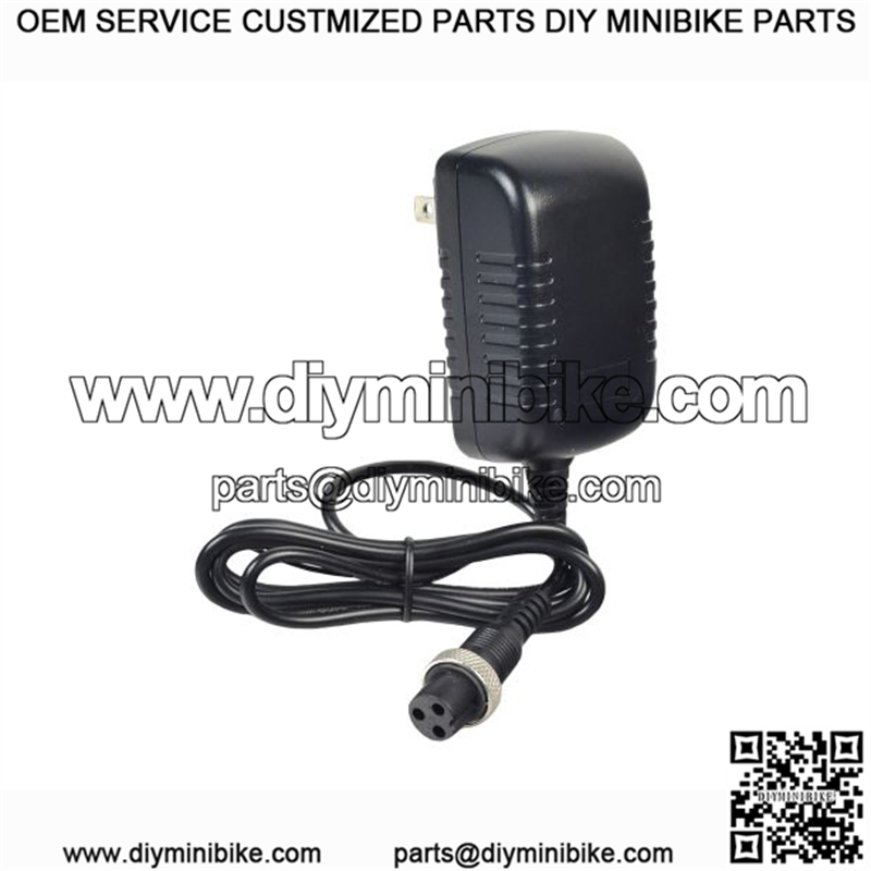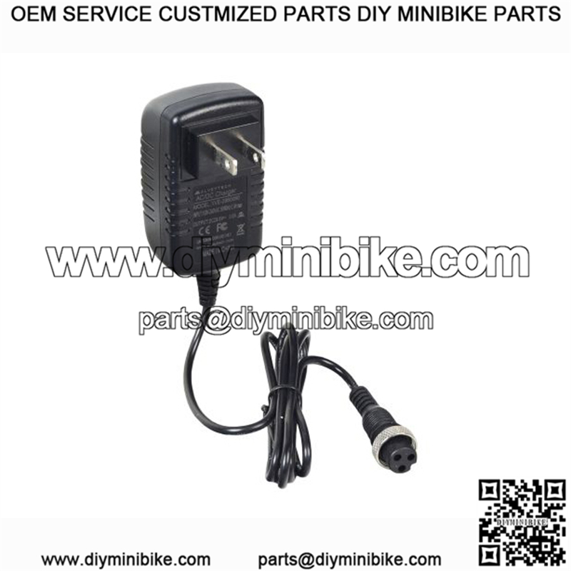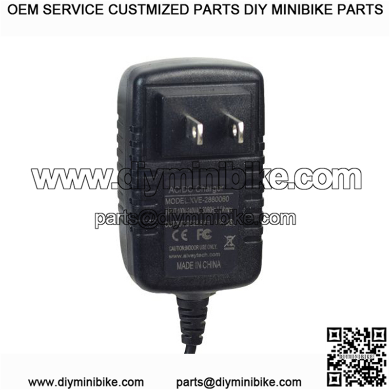 Here is the superb 24 volt 0.6 amp 3-prong XVE-2880060 power brick style battery charger for the Motovox MBxXSe Micro-Mini Bike Just what the Motovox owner needs. Here is the superb 24 volt 0.6 amp 3-prong XVE-2880060 power brick style battery charger for the Motovox MBxXSe Micro-Mini Bike. This little charger from AlveyTech may have a long name and number, but it does a big job keeping those electric mini bike batteries charged up and ready to go.This new power brick style design means that you no longer need to have a plastic box hanging down or sitting there on your garage floor waiting to be run over, tripped over, trampled, or otherwise broken. With this new design, all of the electrical components are contained right there at the electric receptacle and out of harm’s way. Simply plug the case directly into your wall or use an extension cord if you want to.LED DisplayGreen: Charged OKRed: ChargingThe AlveyTech 24 volt 0.6 amp 3-prong battery charger is also compatible with most other 24 volt mini bikes and scooters that require a 3-prong charging connector. This is a premium quality 24 volt battery charger that is Underwriters Laboratories listed with an automatic shut-off feature. AlveyTech Model: XVE-2880060
