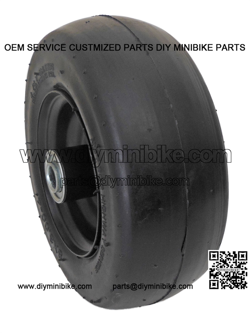 This mounted tire and rim assembly is perfect for many applications from go-karts, lawnmowers, minibikes, carts, and more.