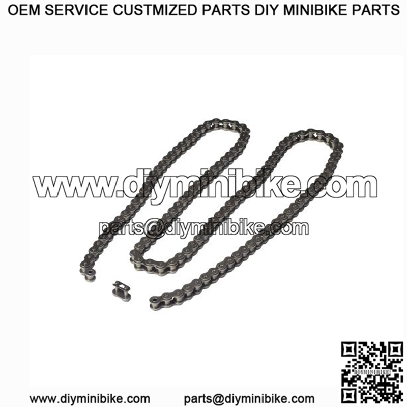 Included is five feet of open loop chain with a master link 420 size chain is used on ATVs, go karts, and dirt bikes, typically with of 49cc, 50cc, 70cc, 110cc, or 125cc engines. Included is five feet of open loop chain with a master link.
