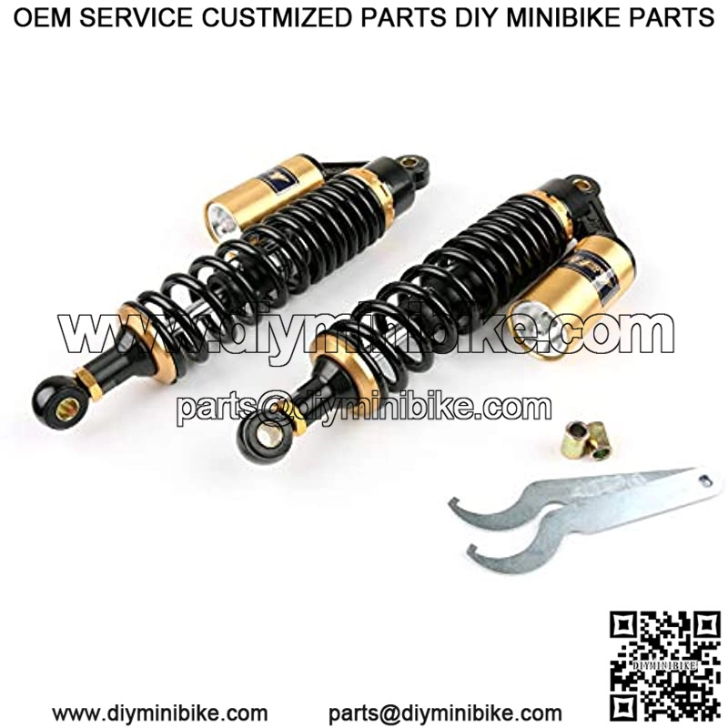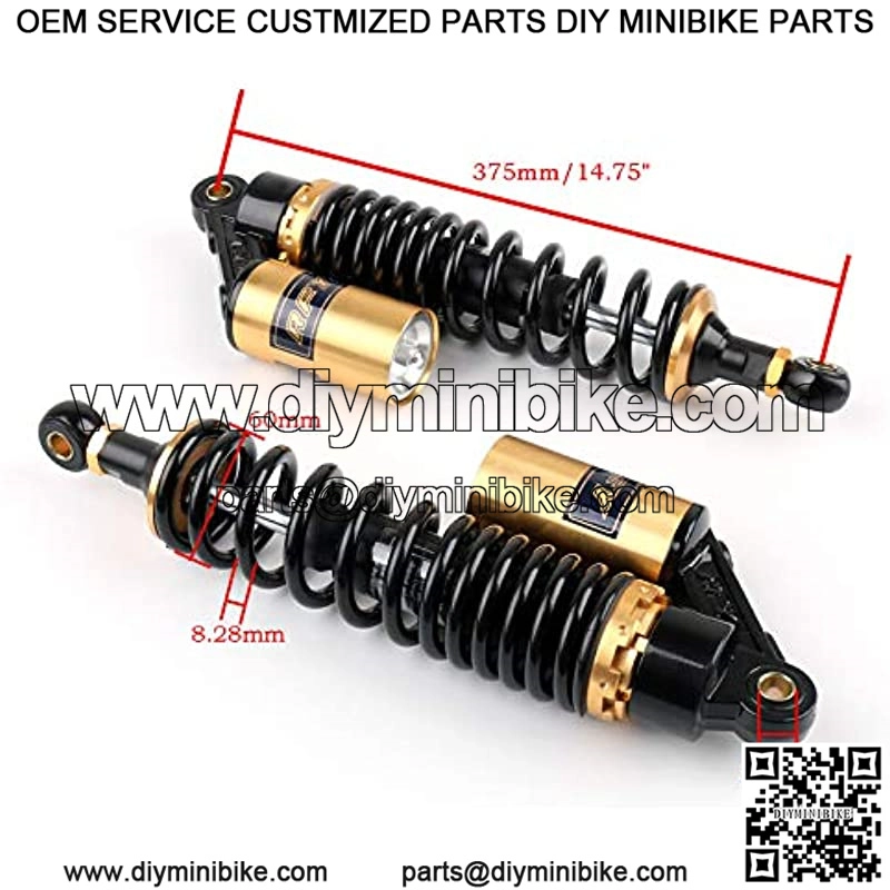 Fitment: Universal Fit. Work perfectly on most 150cc~750cc street bikes, Karting(Go kart), Scooters and Moped Quad (ATV) with shocks of 375mm/14.75″ eye to eye distance.