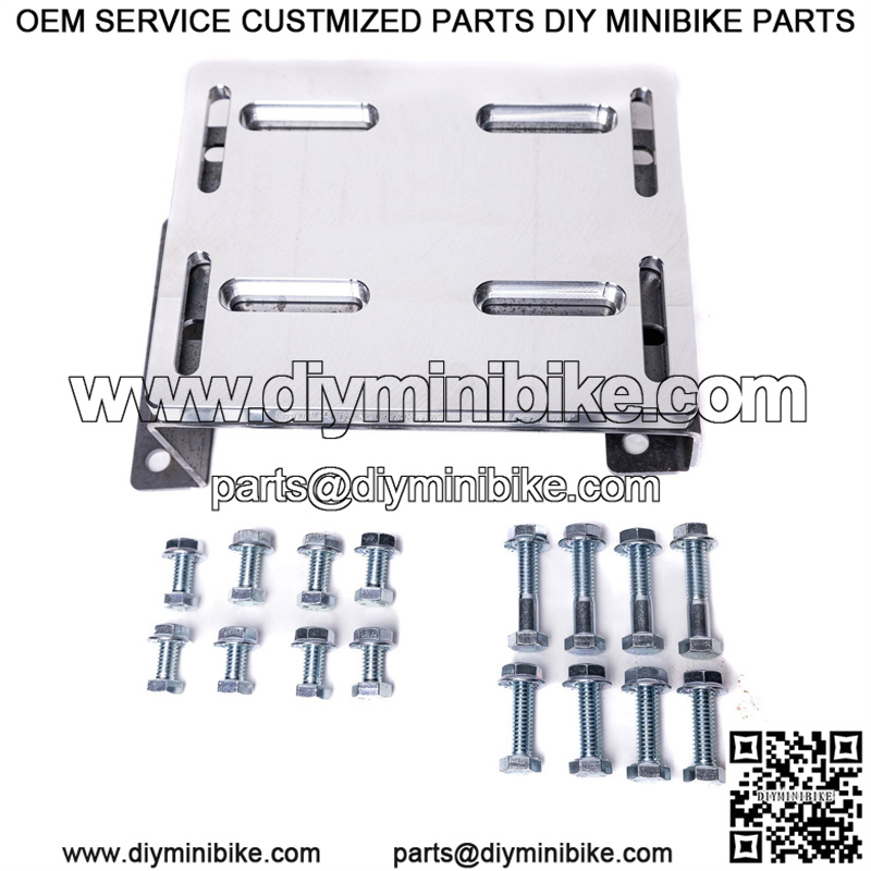 The Mega Moto 80/105 Adjustable Motor Mount is needed when putting 6.5HP engines in these Mega Moto 80 and 105 mini-bike frames. Will need our Stage 1 Deluxe Kit as well to run this kit (the stock air box and muffler will not clearance).