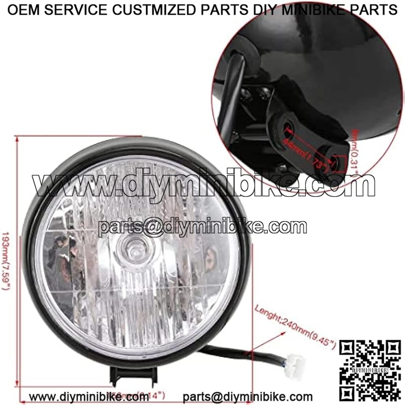 SizeOverall Length: 193 mm/7.59 inches, Overall Width: 156 mm/6.14 inches, Mounting Hole Distance: 44 mm/1.73 inches, Mounting Bolt Diameter: 8 mm/0.31 inches, Wiring length: 240 mm/9.45 inches.