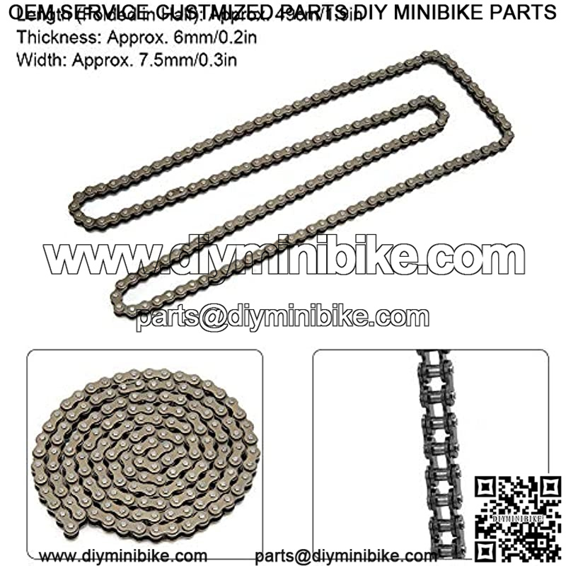 ??Suitable For??The chain is suitable for 47cc 49cc bikes, ATV and scooter, it’s a practical accessory. Original standard, direct replacement for the old or broken one.