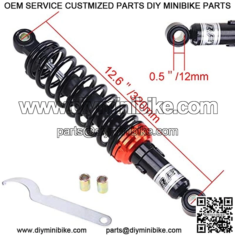 Universal Motorcycle Shock Absorber 320mm/12.6” Description: Color: Black + Orange Material: Aluminium and solid steel Total Length: 3