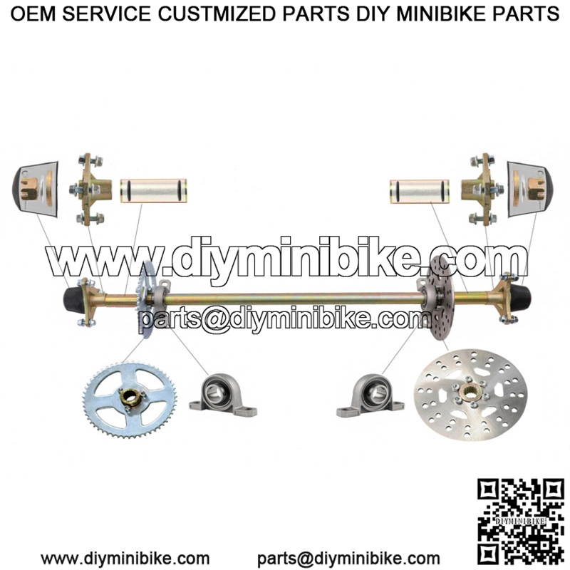 Rear Axle Kit:Length: 740mm (29 1/8″)Disc: 160mm*4mmSprocket: T8F 58TBrake Disc Diameter: 160mm(6 1/4″)This is a complete rear axle kits for go kartFits (For the reference):Perfect for DIY gokart projects or rebuildsFit for quad ATV buggy go kartFit many 50cc 70cc 90cc atv quads, go karts such as atomik , motowork, DHZ , LEI etcPackage Includes:Rear Axle Kit (As picture) AC-YCZYQ-4266 815mm (32″)Product function description:NOTE:Installation Manual Is NOT Included Professional Installation Is Highly RecommendedRear Axle Kit:Axle Overall length (from end to end): 815mm (32″)The thickest part of the axle is 30mm (1.2″)Chain Sprocket: 428 41 TeethBrake Disc Diameter: 190mm(7.5″)Spline teeth: 24T and 28TFits (For the Reference):Perfect for DIY gokart projects or rebuildsFit for quad ATV buggy go kartFit many atv quads, go karts such as atomik , motowork, DHZ , LEI etcPackage Includes:Rear Axle Kit (As picture)