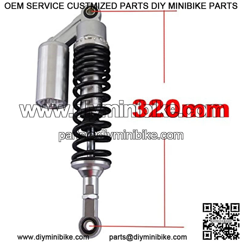 Motorcycle shock absorber universal fit for most vehicles, like Honda/Yamaha/Suzuki/Kawasaki, etc. The diameter of the round hole at the bottom is 12mm. Fit bikes with shock absorbers of 320mm eye to eye distance.Shock strength adjustable. Best choice for replacement, style upgrading or bike modification.Please check the size details and make sure it will fit your bike before purchase.The coil-over springs are helpful to reduce the shock.Package included: One Pair Shock Absorber, 2 X Wrench, 2 X 12mm Tubes[10mm or 14mm tube bushes ,Clevis Ends(U-Types or Round Eyes) are also available in our store.]Color:320 Sliver and BlackItem: 320mm Motorcycle Shock Absorber One PairColor: As the pictures showsInstallation Type: Eye to EyeDistance from eye to eye: 320mm (12.6″)Working strobe: 60mmSpring Thickness: approx. 8mmMaximum load: 200 kg (??440 lbs)Top and bottom hole diameter: 12mmMaterial: Aluminium and solid steelPlacement on Vehicle: Rear,Left,RightEye Diameter(with bushing removed): 16mm