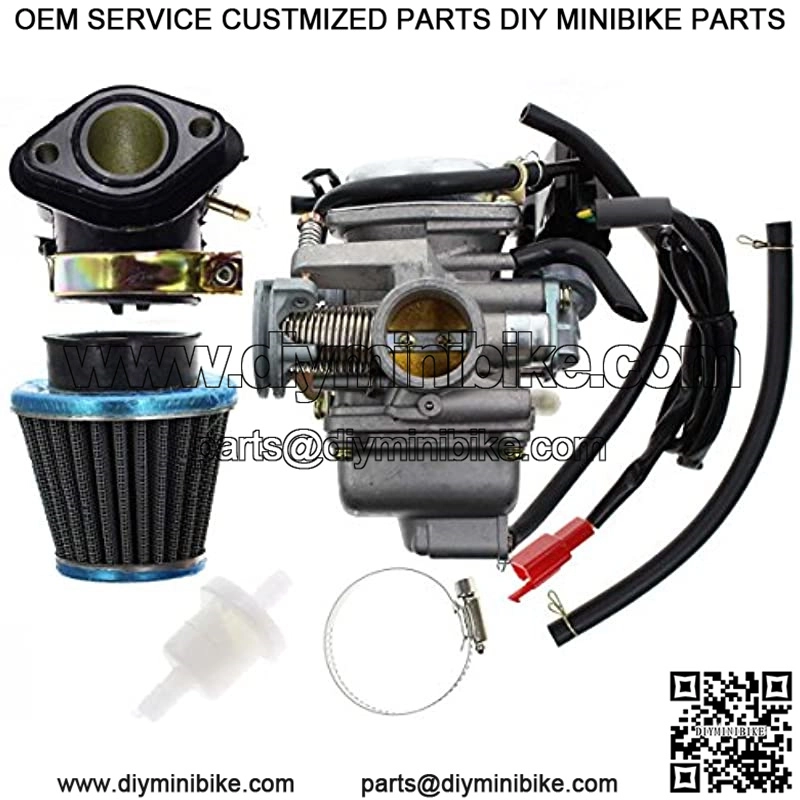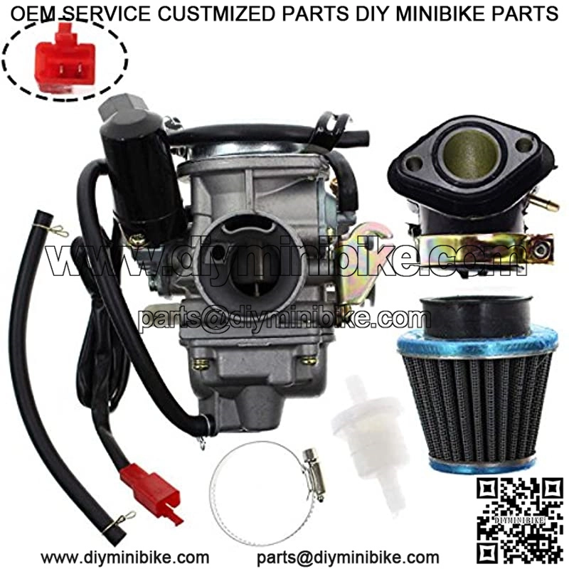 PD24J Carburetor for GY6 125cc 150cc Go Kart Scooter 152QMI 157QMJ Carb with Air Filter Intake Manifold