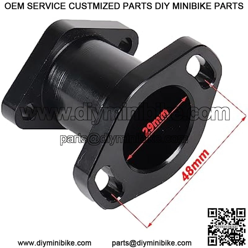 ApplicabilityThis CNC Intake Pipe is mainly used on mini bikes, but can also be used on go-karts with Modifications to the throttle cable.