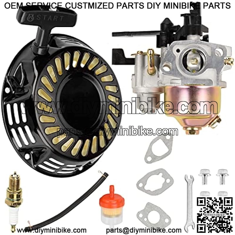 Pull Recoil Starter Carburetor Carb for Predator 212cc 196cc 6.5HP Baja Massimo MB165 MB200 Coleman CT200U Trail BT200X Mini Bike Hummerhead 80t Trailmaster mid XRS XRX motovox KT196 Go Kart