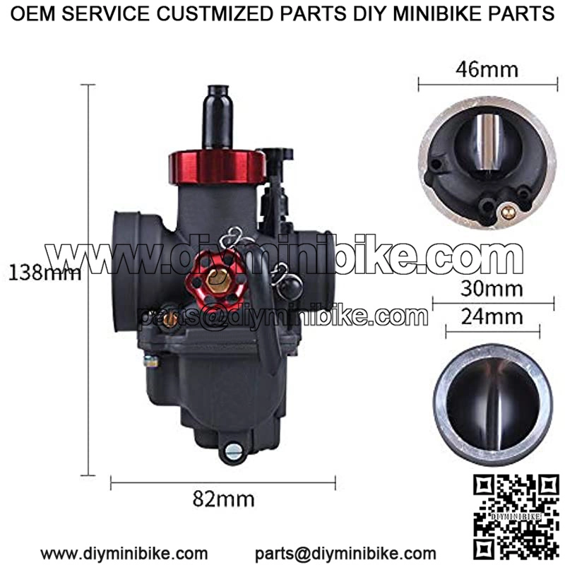 RACING CARBURETOR PE24FL FLANGE FIT FOR CROSS BIKE 70CC 100CC 125CC SCOOTER HONDA YAMAHA SUZUKI (PE24FLYJ, Black)
