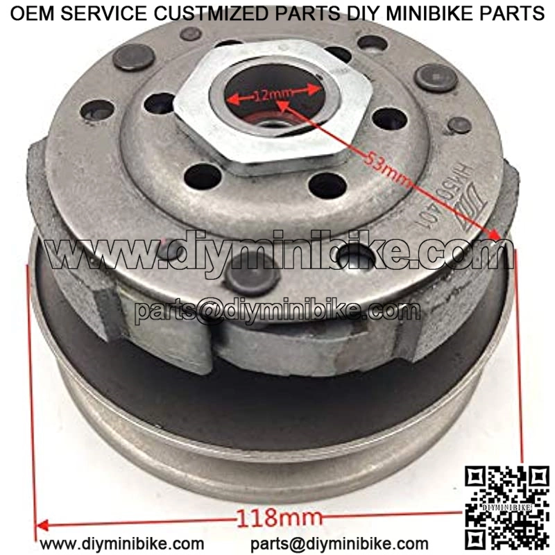 Fit GY6 50cc 139QMB Engine 22 Spline internal clutch drum/clock; Spline area :12mm drum outer diameter :115mm drum inner diameter :105mm Can hold most 50cc Chinese motorcycles For your quick use of new accessories, please consult the picture information and before purchasing