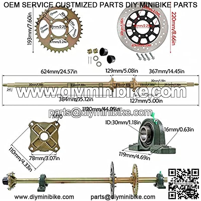 ? MAIN PARAMETER ??Bearing Length:1120mm (44″), Disc Diameter:220mm(8.66″), Chain Sprocket: 530 37 Tooth 58mm. The thickest part of the axle is 33mm (1.3″). Please noted picture specific information.